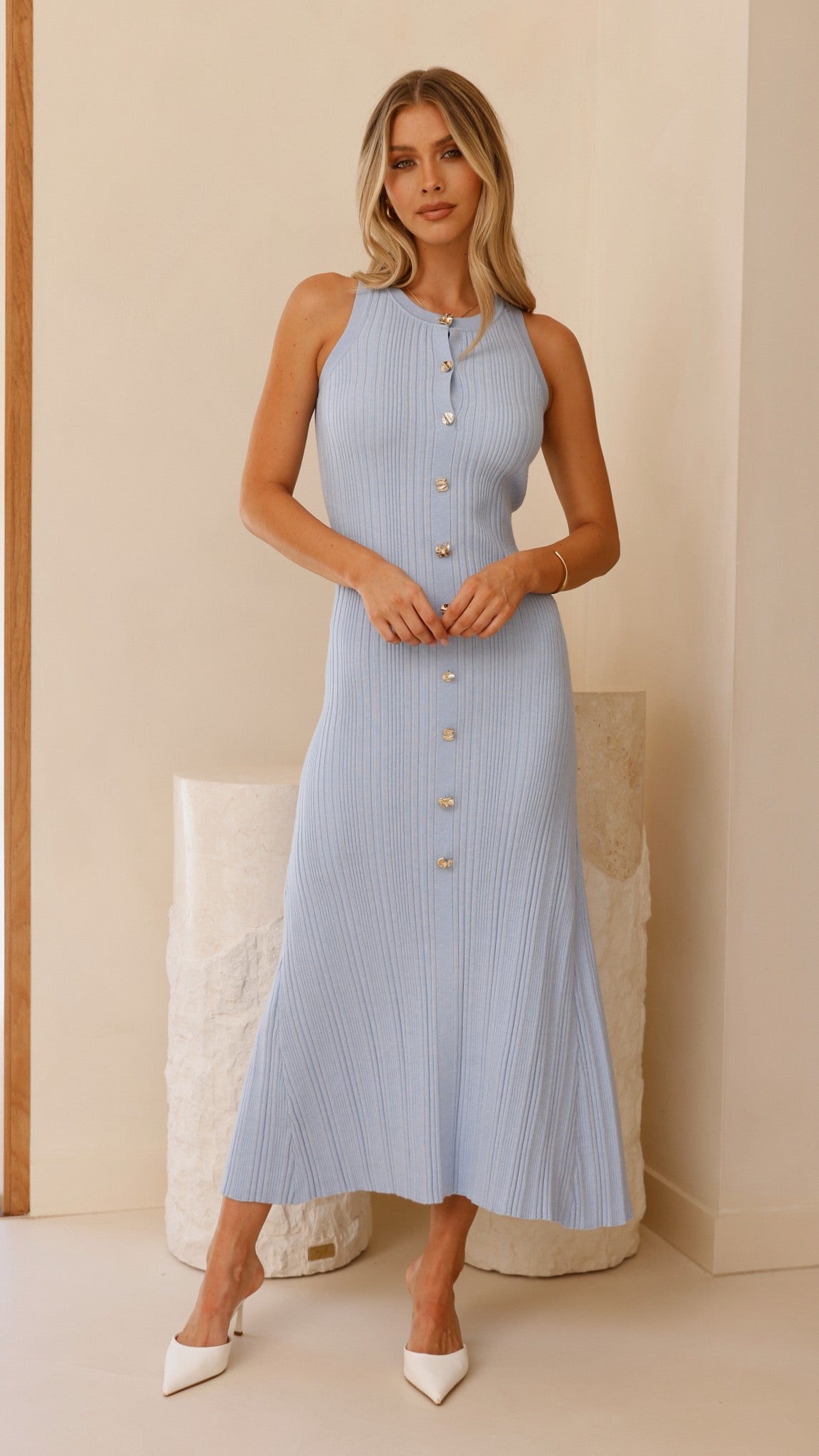 Aylah Knit Midi Dress - Blue