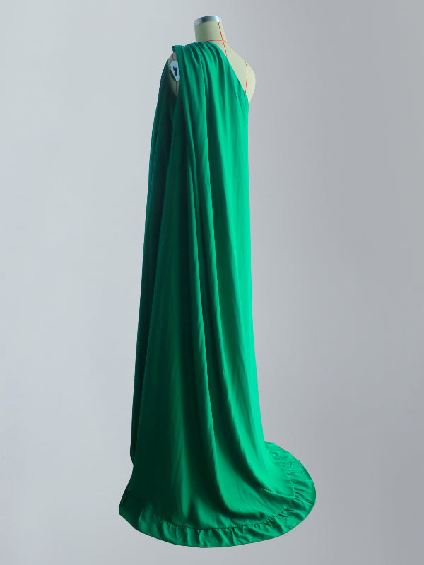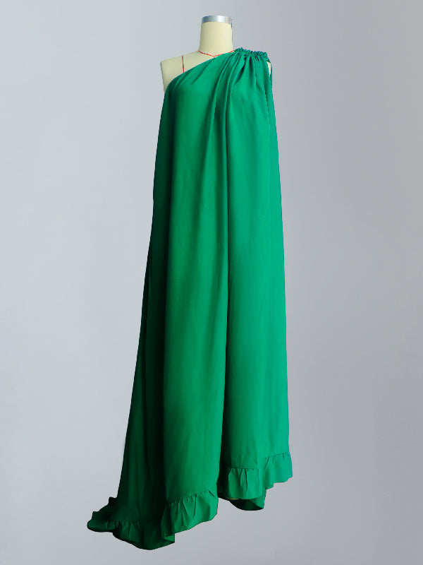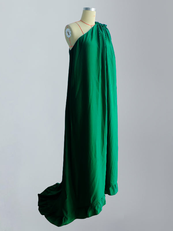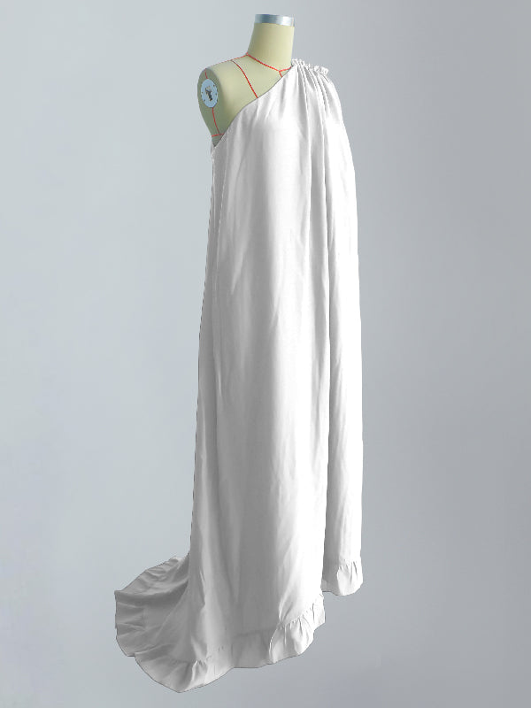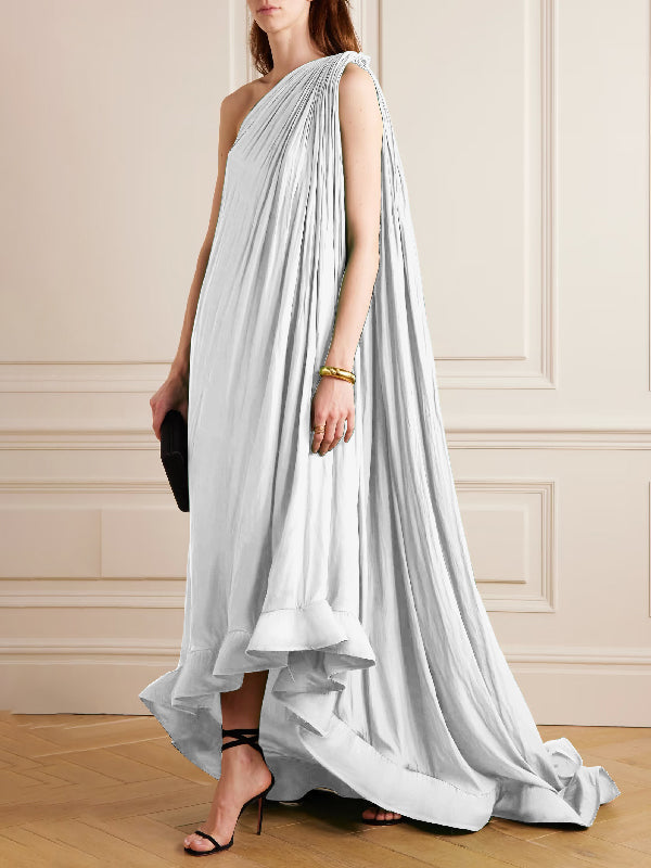 Sleeveless Loose Pleated Falbala Solid Color One-Shoulder Maxi Dresses