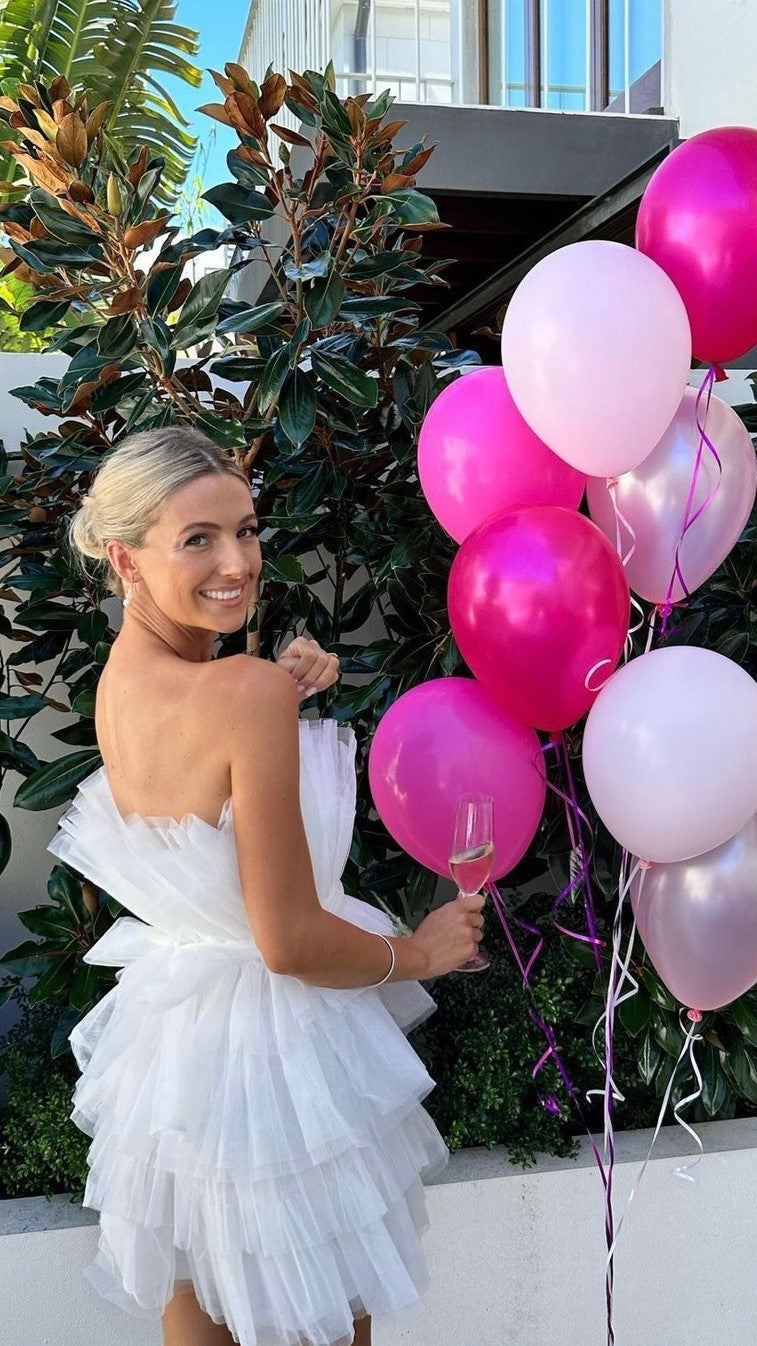 Keep the vibes fun, flirty and a little dramatic with our Carrie Mini Dress. This beautiful little number features a fitted waist, flared out skirt and sculptural tulle overlay. It's a statement party number that will have you feeling like the main character!