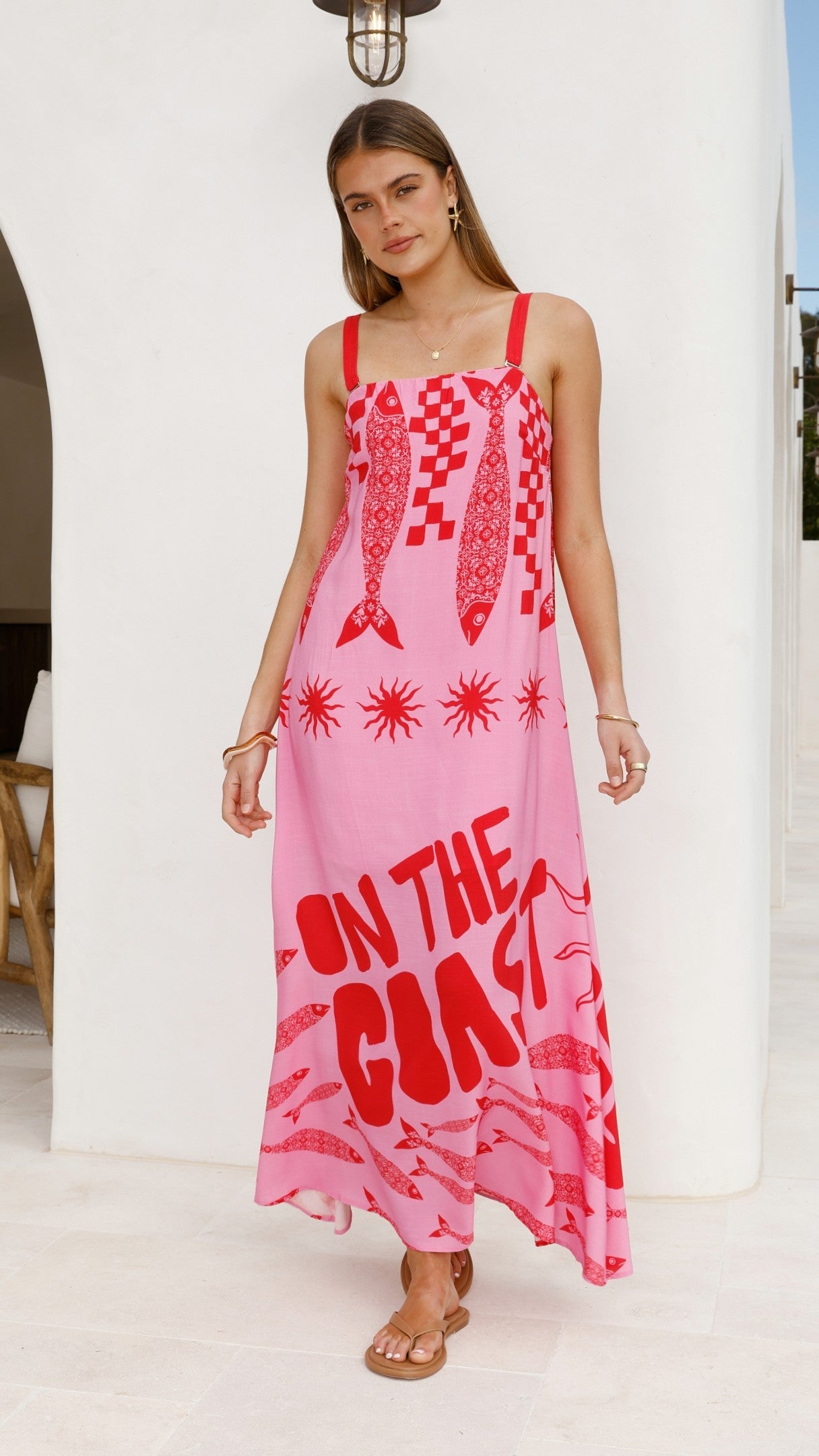 Elidie Strapless Maxi Dress - Pink/Red Tide