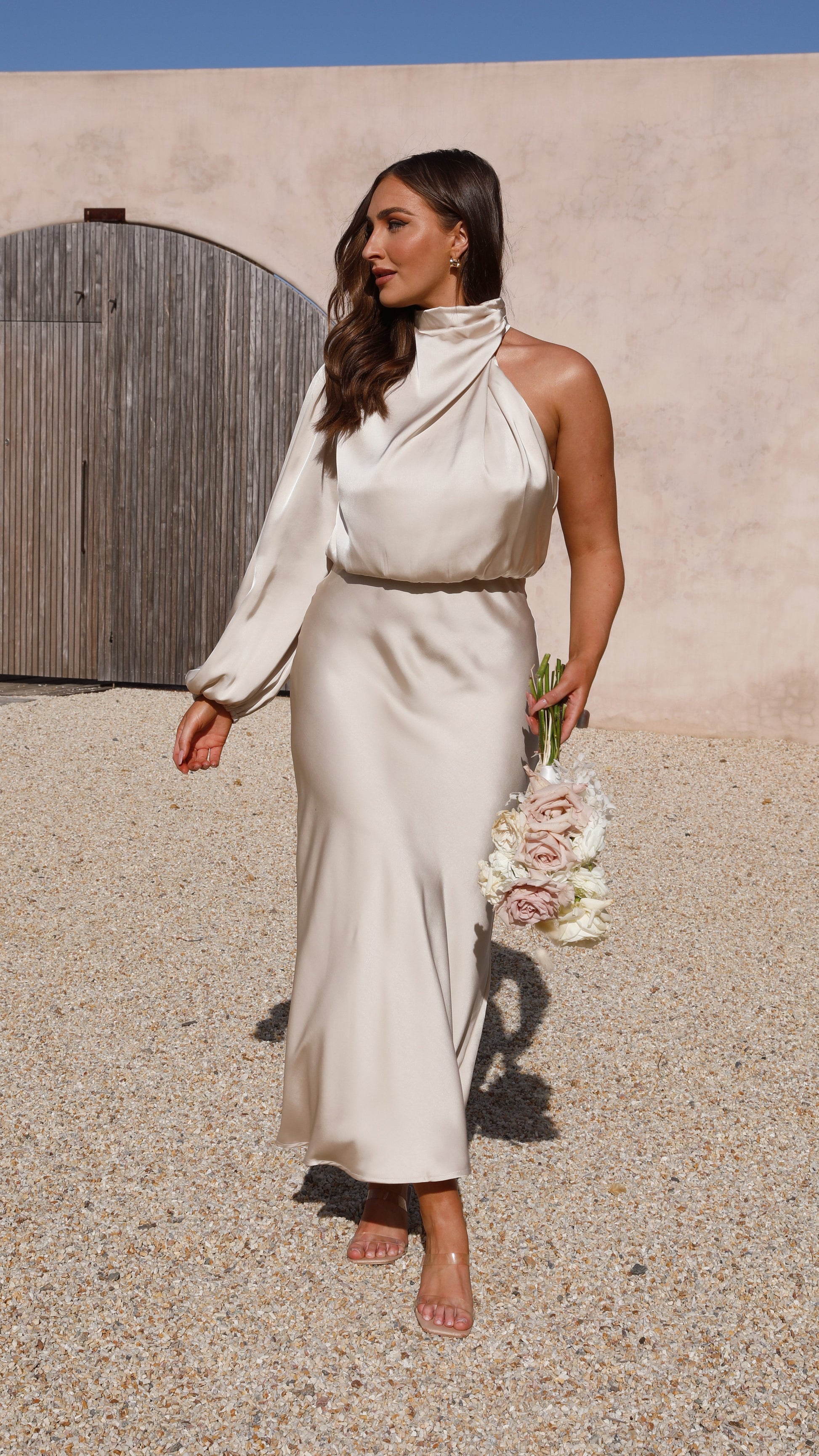 Esther One Shoulder Long Sleeve Dress - Champagne