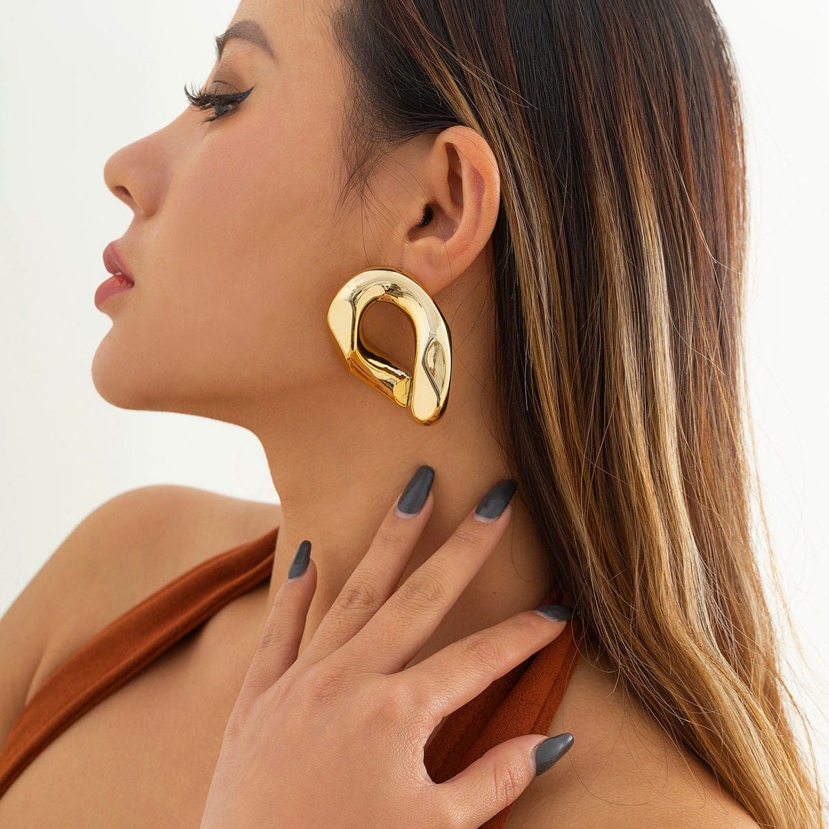 Geometric Gold Silver Tone Chunky Hoop Earrings