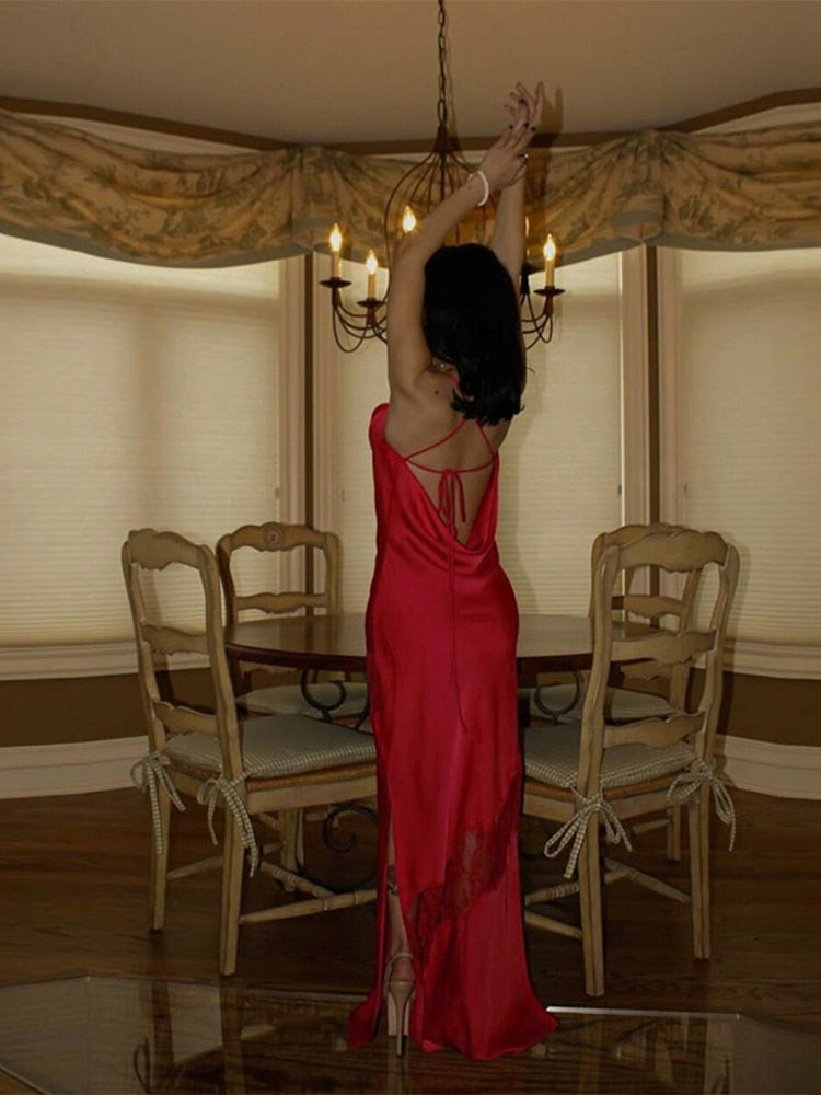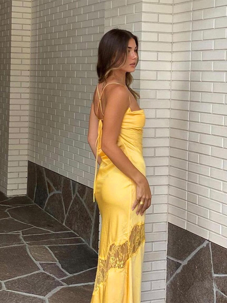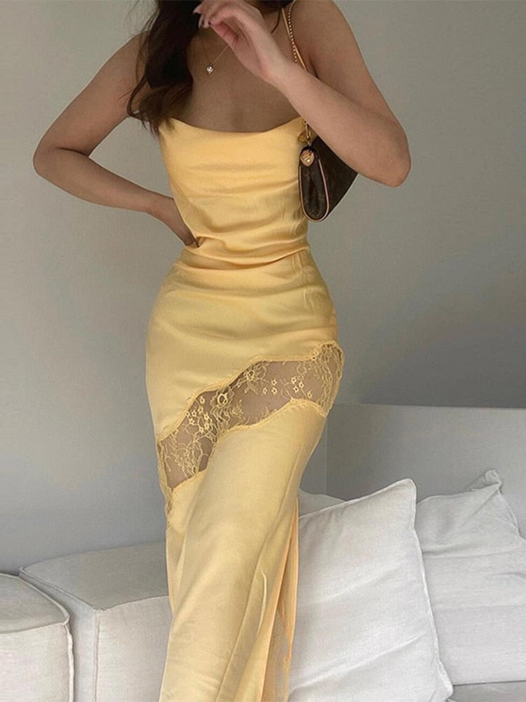 Sleeveless Midi Lace Satin Dress Party Club Backless Off Shoulder Elegant Dresses For Women 2024 Summer