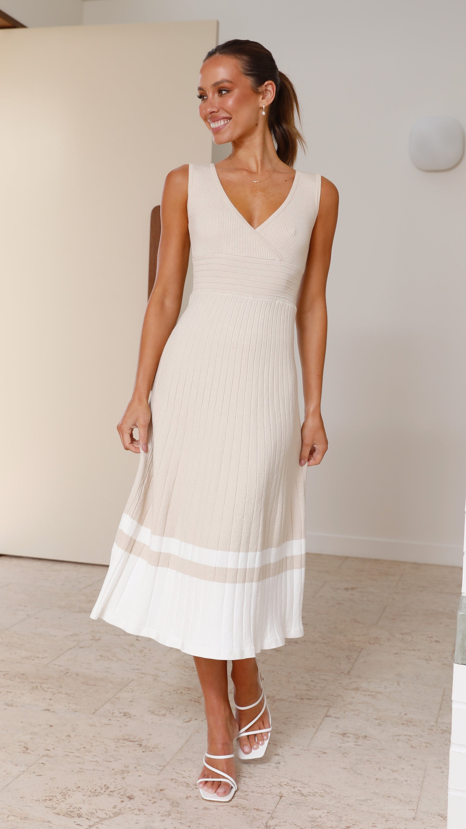 Jayde Knit Dress - Beige/White