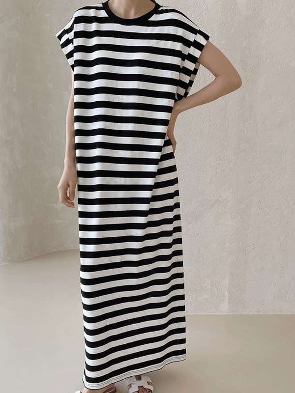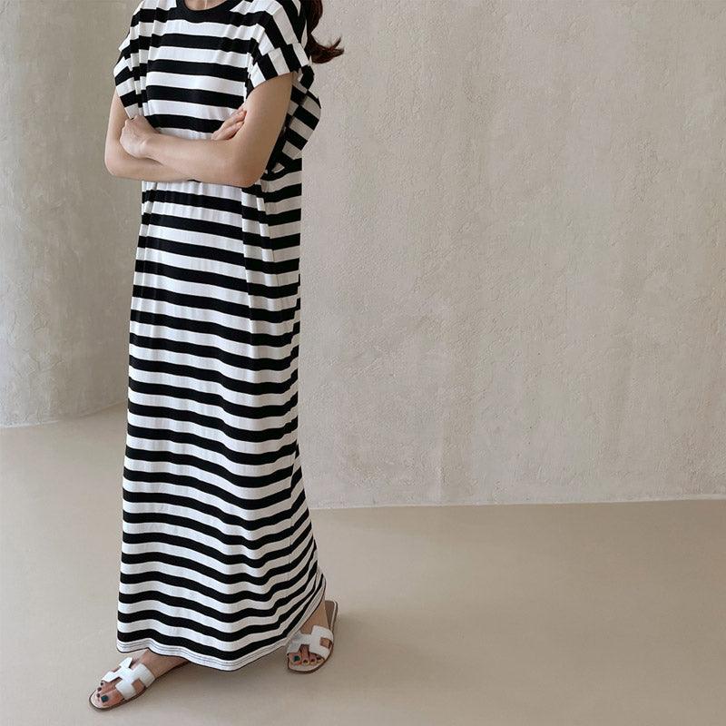 This Simple Long Striped Comfy Dress exudes sophistication and effortless style with its timeless horizontal stripes and classic cut. Crafted with the highest quality materials. its luxurious softness and unique shape make it a timeless piece of decadent comfort. perfect for special occasions or everyday wear.