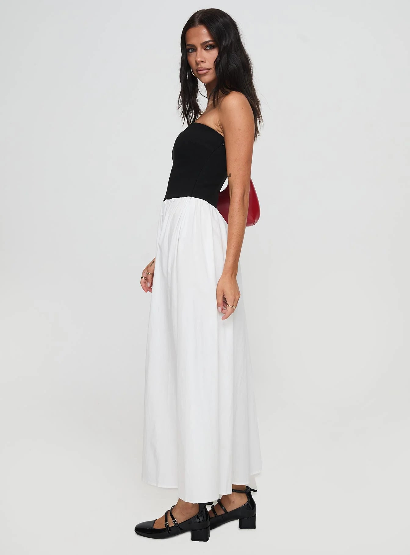 - Strapless. elasticated band at bust. pleated silhouette. invisible zip fastening at side