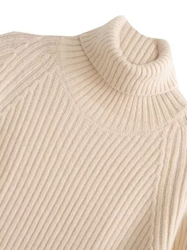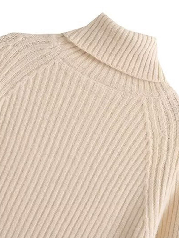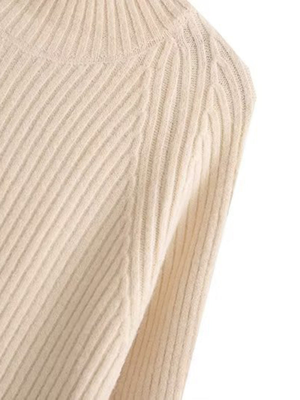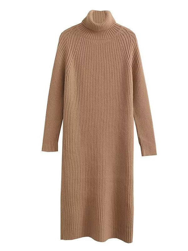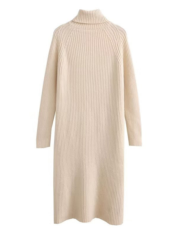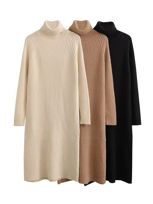 Simple Long Sleeves Loose Solid Color High-Neck Sweater Dresses