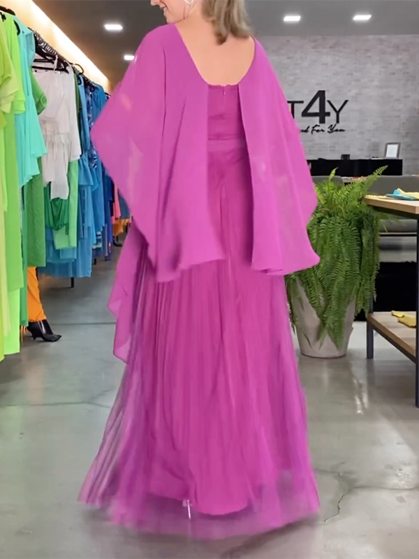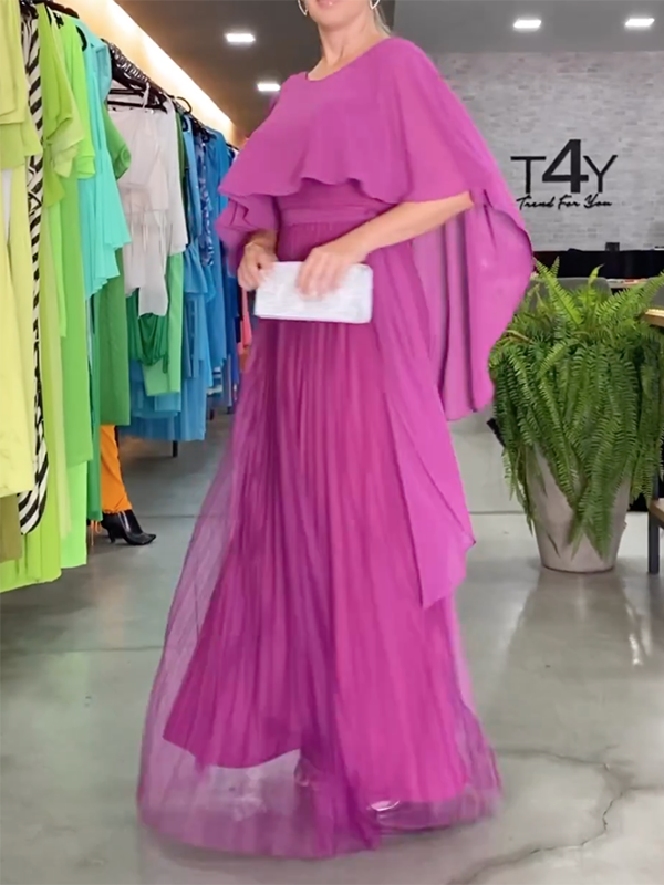 Simple Short Sleeves Split-Joint Round-Neck Maxi Dresses