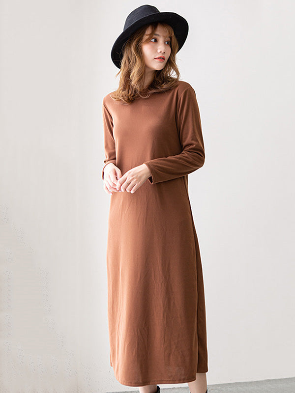 Simple Solid Color Round-Neck A-Line Midi Dress