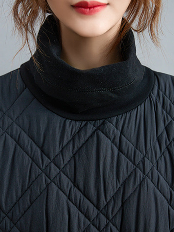 Simple Split-Joint High-Neck H-Line Quilted Midi Dress