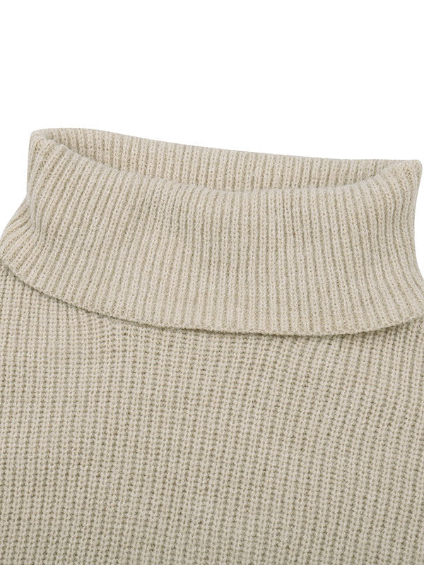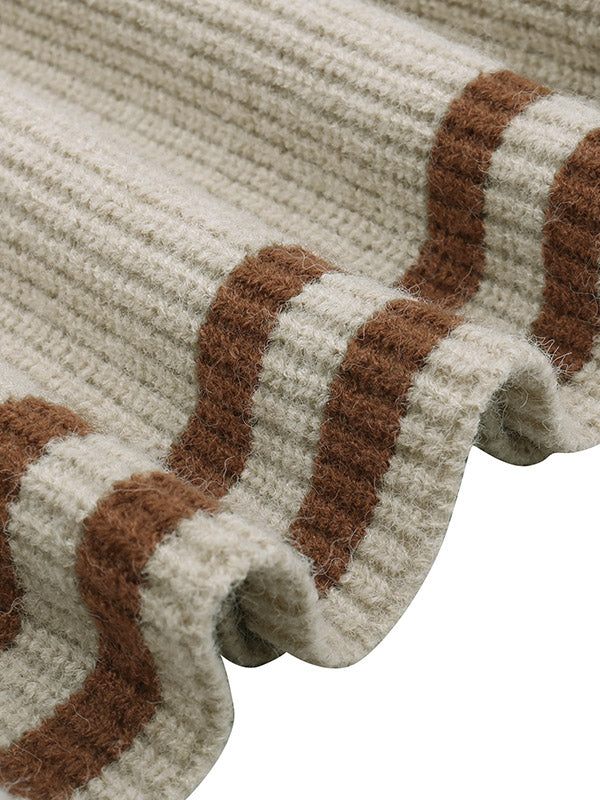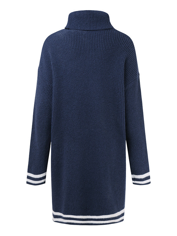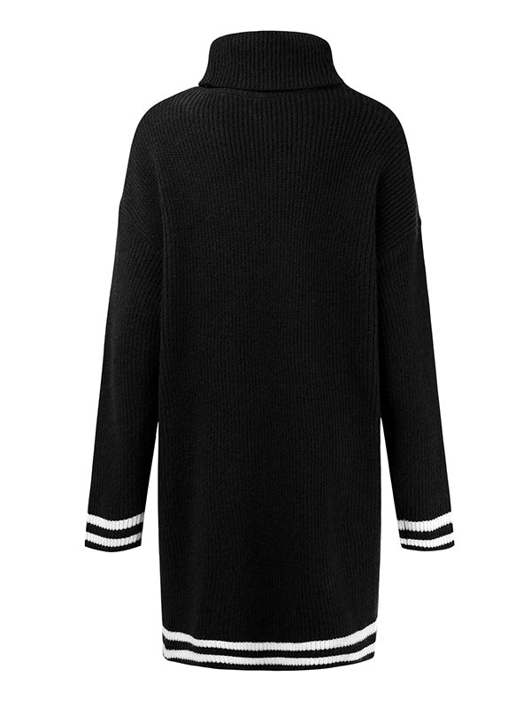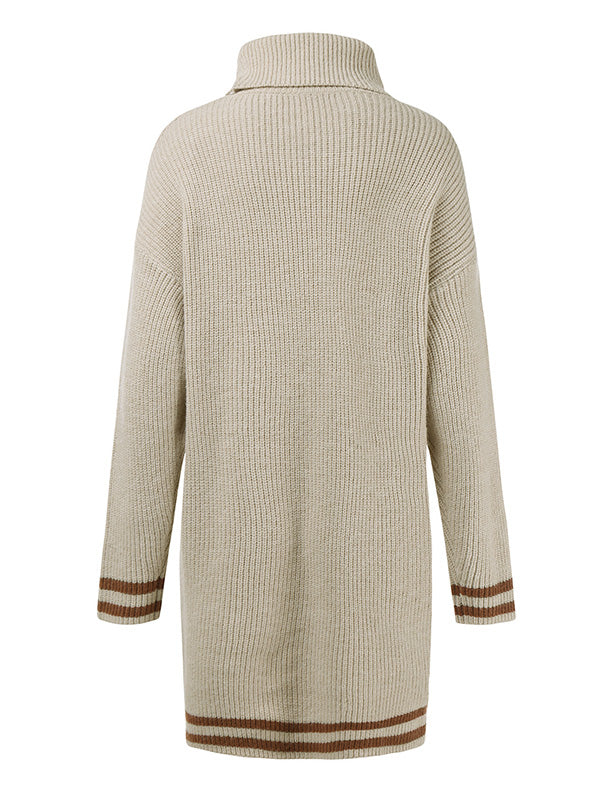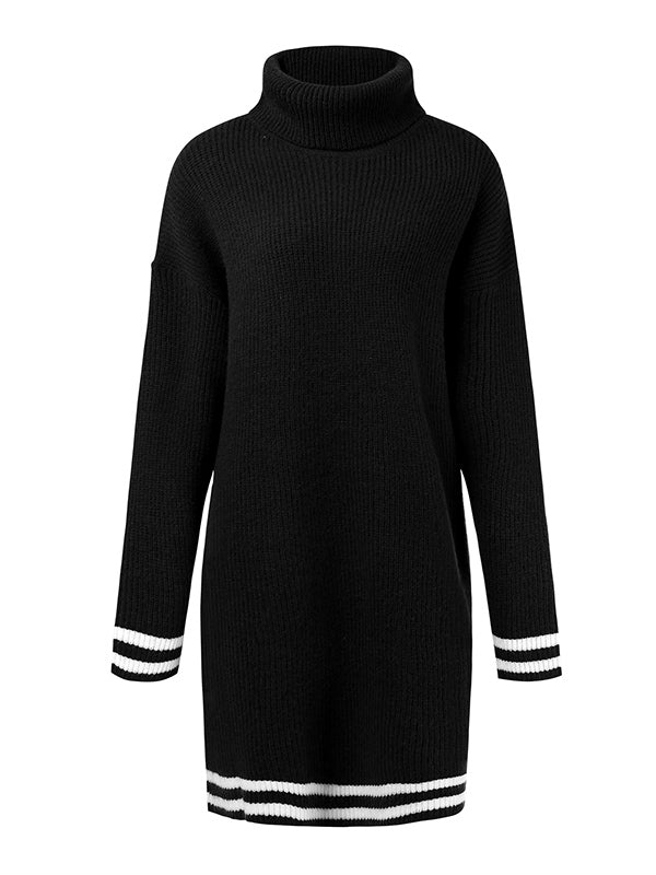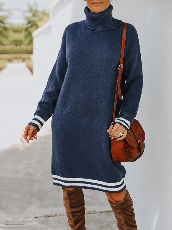 Simple Striped High-Neck Long Sleeves Mini Dress Sweater Dress