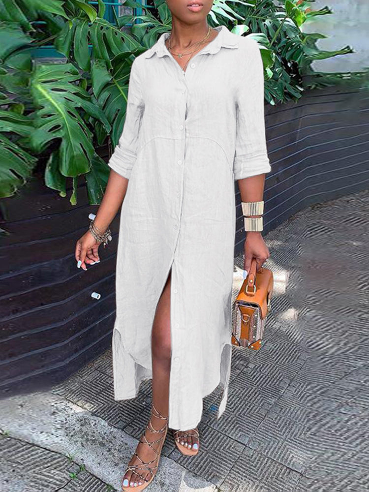 Solid Color Casual Button Lapel Collar Shirt Maxi Dress